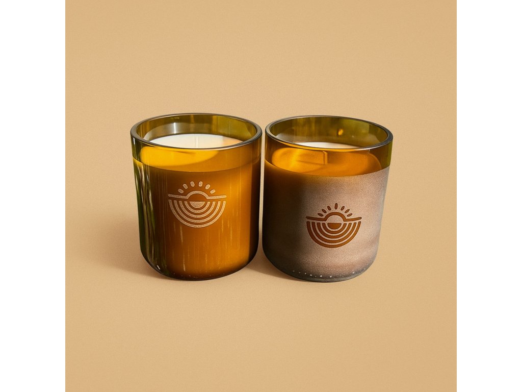 Sklenice jsou vyrobeny z recyklovaných lahví a po dohoření zůstávají jako stylové skleničky na pití. Vybírat můžeš mezi pískovanou elegancí a lesklou jednoduchostí – přesně tak, jak to máš ráda.