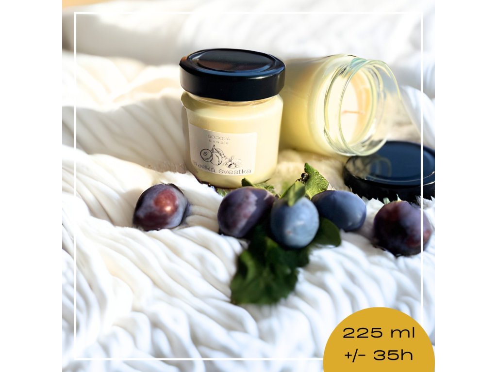 Podzimní vůně zralých švestek s jemným dotekem vanilky a marcipánu. Malá svíčka, která zahalí domov do hebké vůně ovoce a tepla.💜