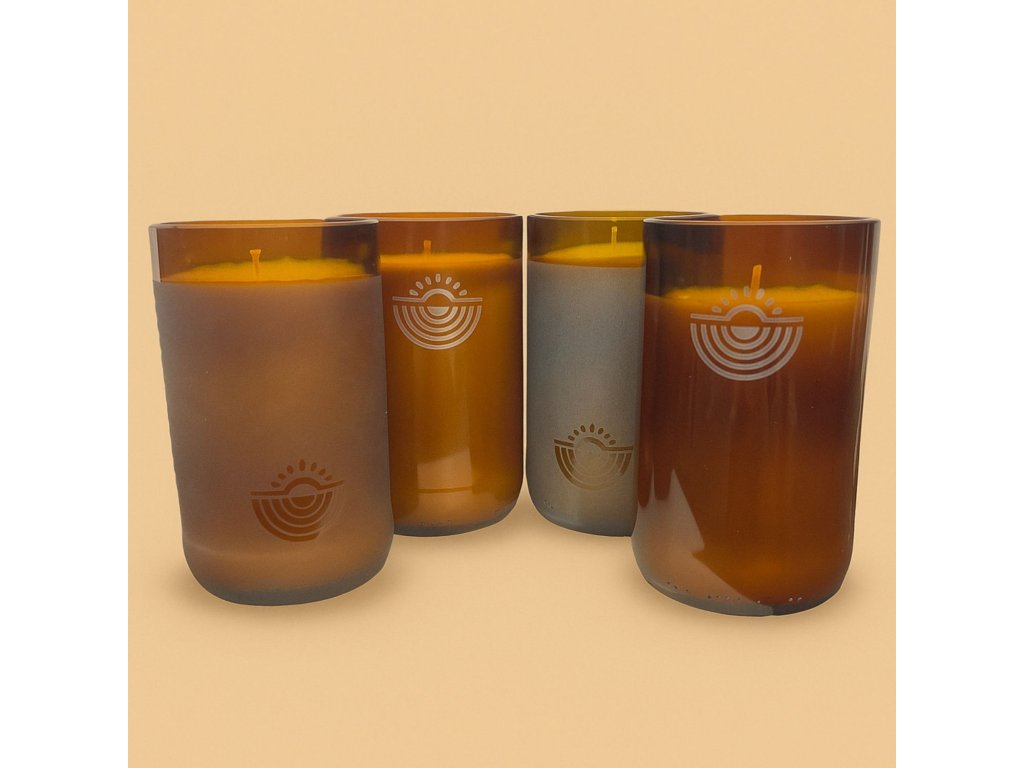 Sójová svíčka ve 300 ml skle z recyklované lahve. Dlouhá výdrž, ruční výroba, 100 % vegan.