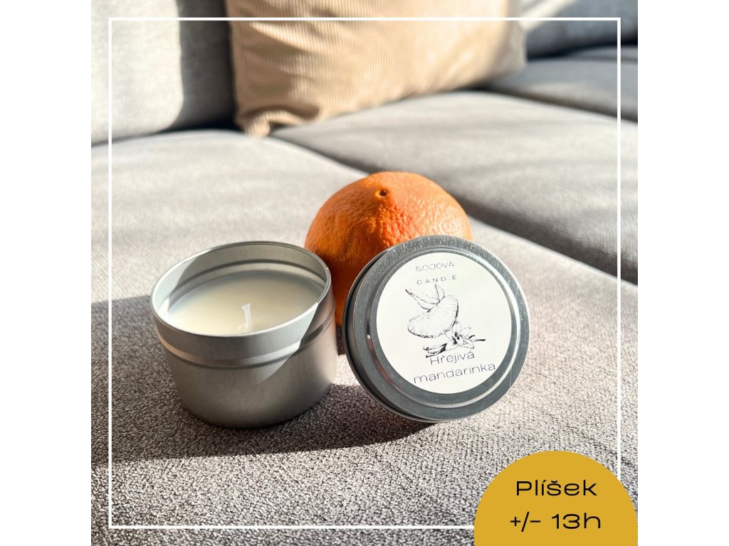 Hřejivá mandarinka rozzáří chladné dny svou šťavnatou a zároveň jemně kořeněnou vůní. Malá sójová svíčka v plechu vytváří atmosféru útulna, relaxace a radosti. Ideální jako drobný dárek nebo osobní rituál pro chvíle pohody. Vyrobena ručně v Česku z přírodního vosku, který hoří čistě a dlouho.