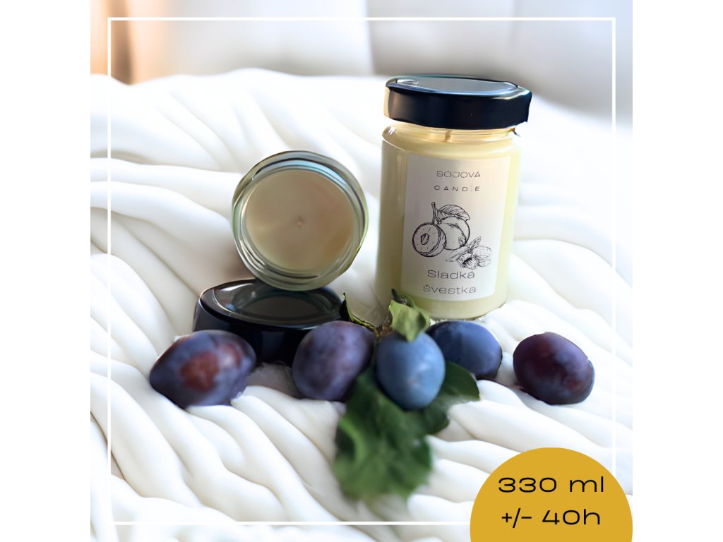 Velká uzavíratelná svíčka – Sladká švestka spojuje sladkou vůni dozrálých švestek s lehkým nádechem koření, marcipánu a vanilky. Je to vůně, která připomíná pečené ovoce, klidné večery a teplo domova. Sladká, hřejivá a přitom jemně ovocná – ideální pro podzimní i zimní období.